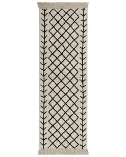 Aseta tämä upea huomiota herättävä matto esimerkiksi eteiseen, makuuhuoneeseen tai olohuoneeseen. Maton geometrinen kuvio ja neutraali beige tuovat ihanaa kontrastia niin moderniin kuin boho-tyyliseen kotiin. Matto on valmistettu kestävästä puuvillasta, joten se kestää kulutusta kiireisissäkin tiloissa. Lisäksi se on lyhytnukkainen ja ihanan pehmeän tuntuinen jalkojen alla.